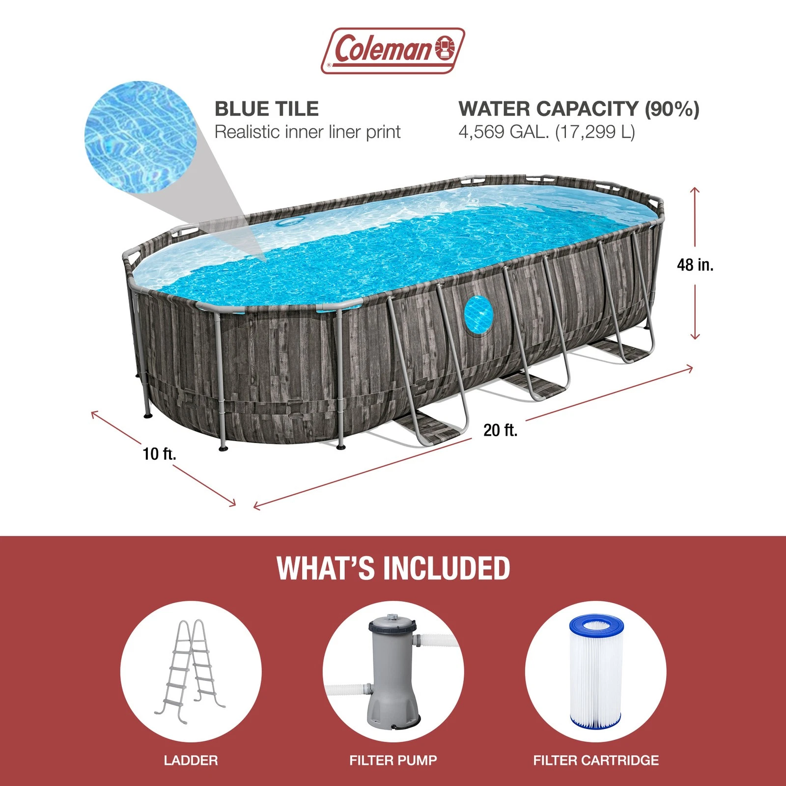 Included Accessories: Filter pump, ladder, and repair patch