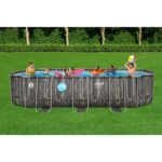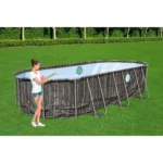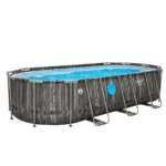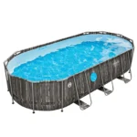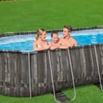 The pool uses a corrosion-resistant metal frame with a secure connection system that ensures structural strength and long-term durability. Its liner is made from TriTech three-layer reinforced material, which provides superior resistance to tearing, stretching, and punctures compared with standard PVC liners.